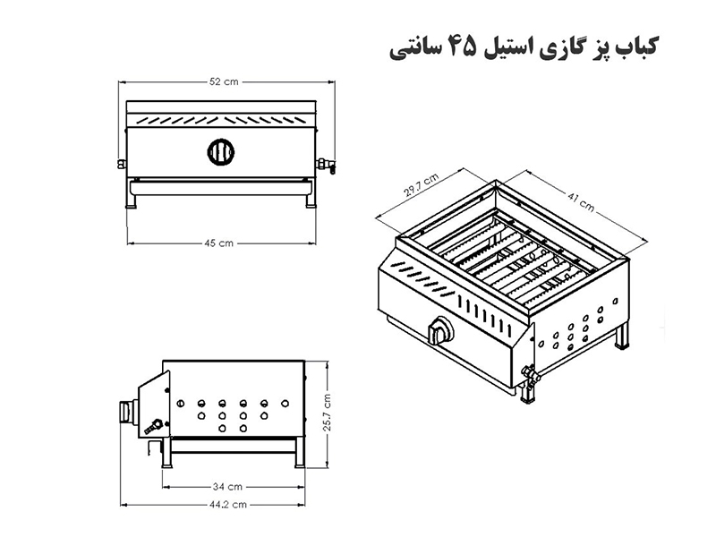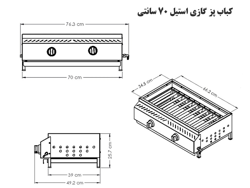 چکیده ای از ویژگی های کباب پز گازی استیل به شرح زیر می باشد